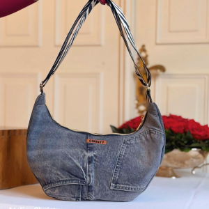 Découvrez notre Sac Demi-Lune format L, une pièce unique au style affirmé et responsable. Confectionné à partir de pantalons en jean recyclés provenant de chez Celio, il valorise la seconde vie des matières tout en offrant un design moderne et intemporel. Avec ses dimensions de 33 × 29 cm, il est parfaitement pensé pour votre quotidien : assez grand pour…